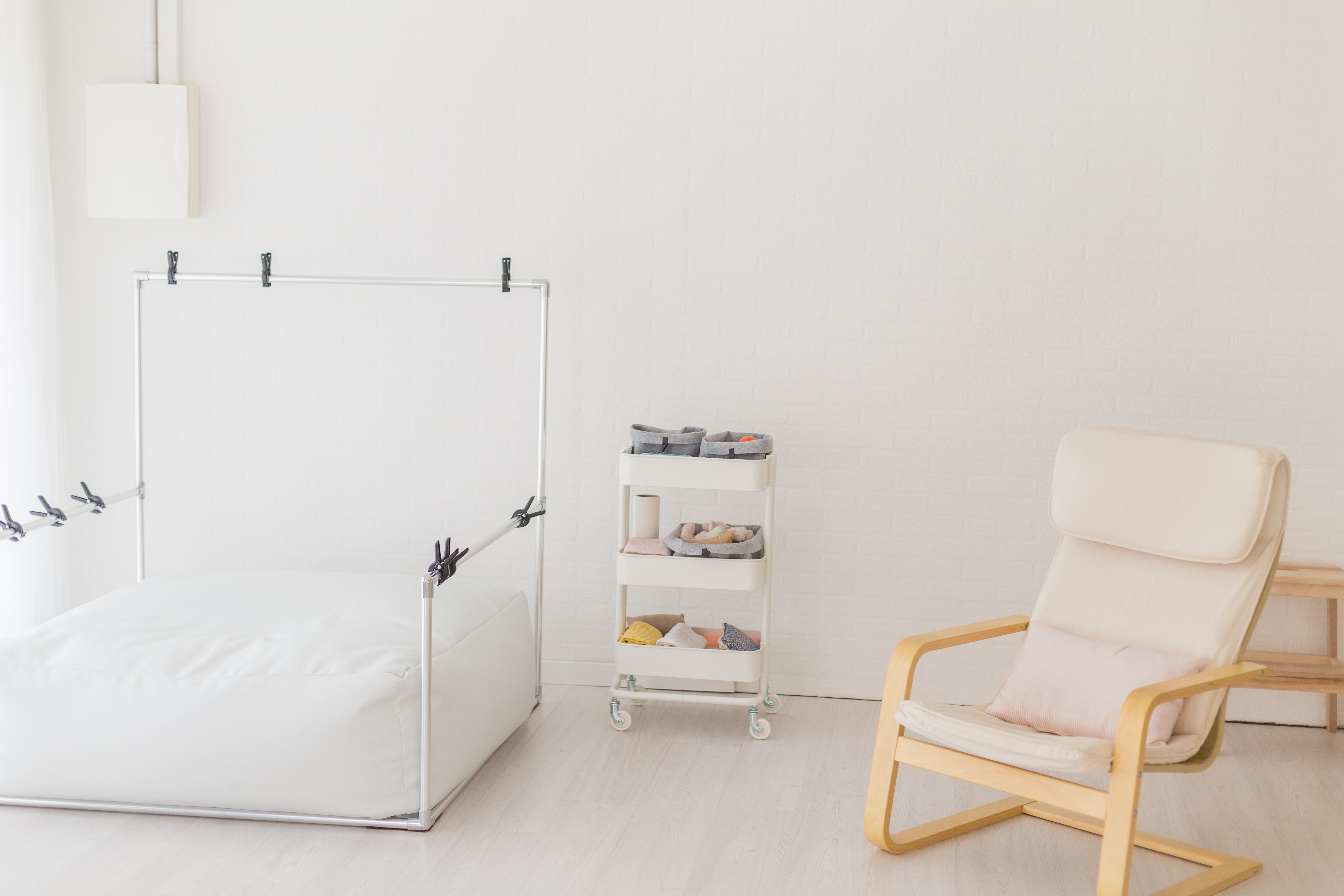 Trabajar con recién nacidos de menos de 15 días conlleva tener un estudio bien equipado y con facilidades para que los papis puedan darle todo lo necesario al bebé. El estudio está lleno de detalles para vuestra comodidad. Encontraréis un cambiador, mantas, lavabo, temperatura idónea, sillón de lactancia… todo lo necesario para que estéis tranquilos y disfrutéis de la sesión.